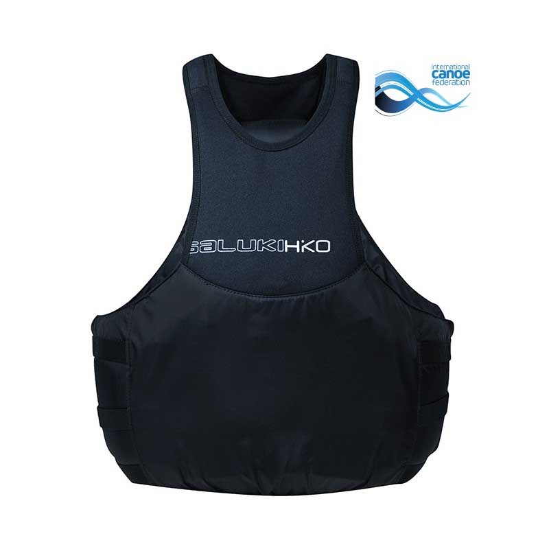 ICF REGISTERED PFD, suitable for slalom and other canoe racers. Meets EN ISO 124A2-5:2006, Slip on 200D Nylon with neo neck and 2 tab adjustments.